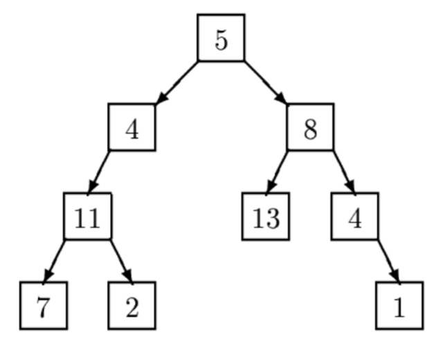 For example, a level order traversal of the tree above is: 5, 4, 8, 11, 13, 4, 7, 2, 1.